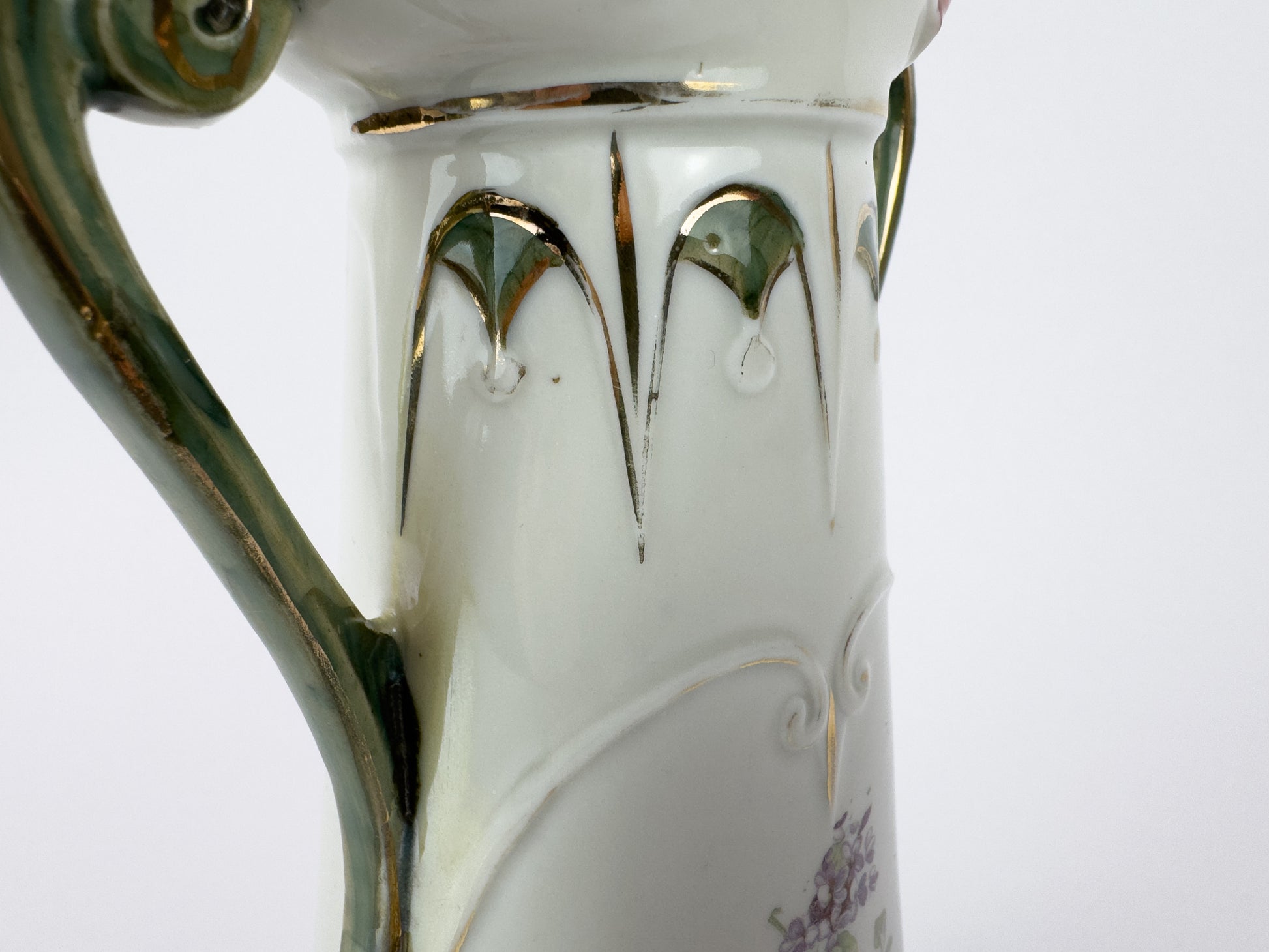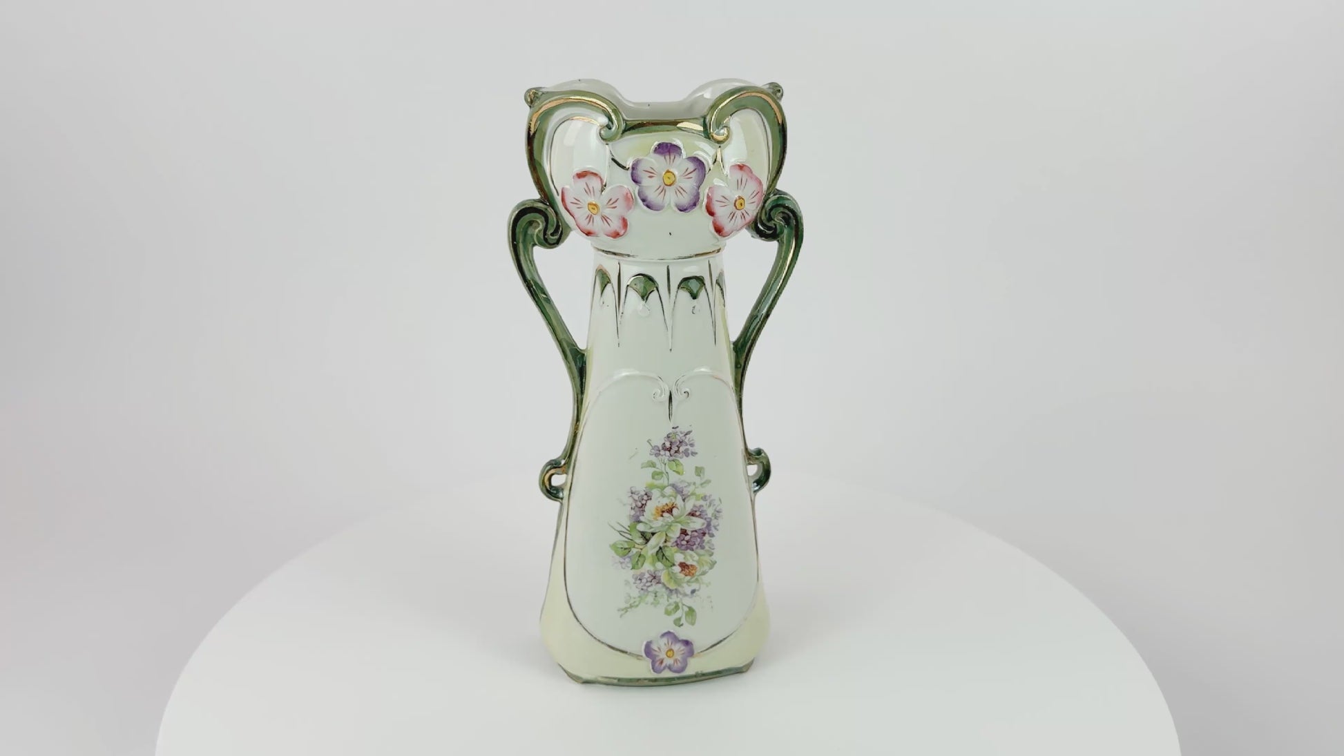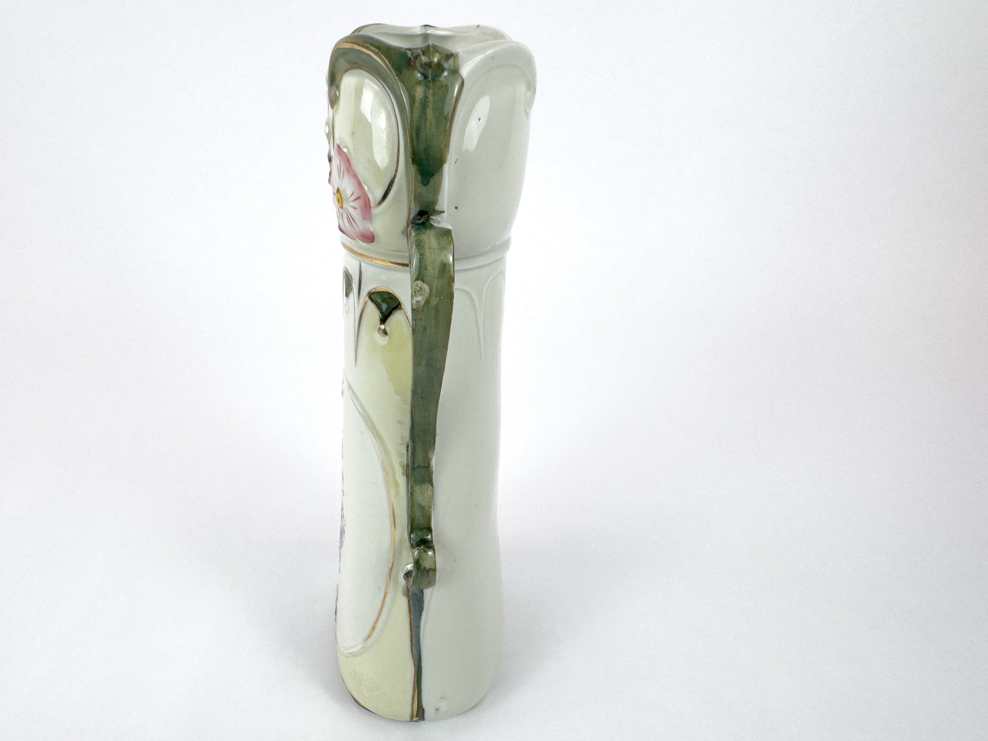 Art Nouveau Porcelain Vase with Floral Décor and Gilded Handles, c. 1900
