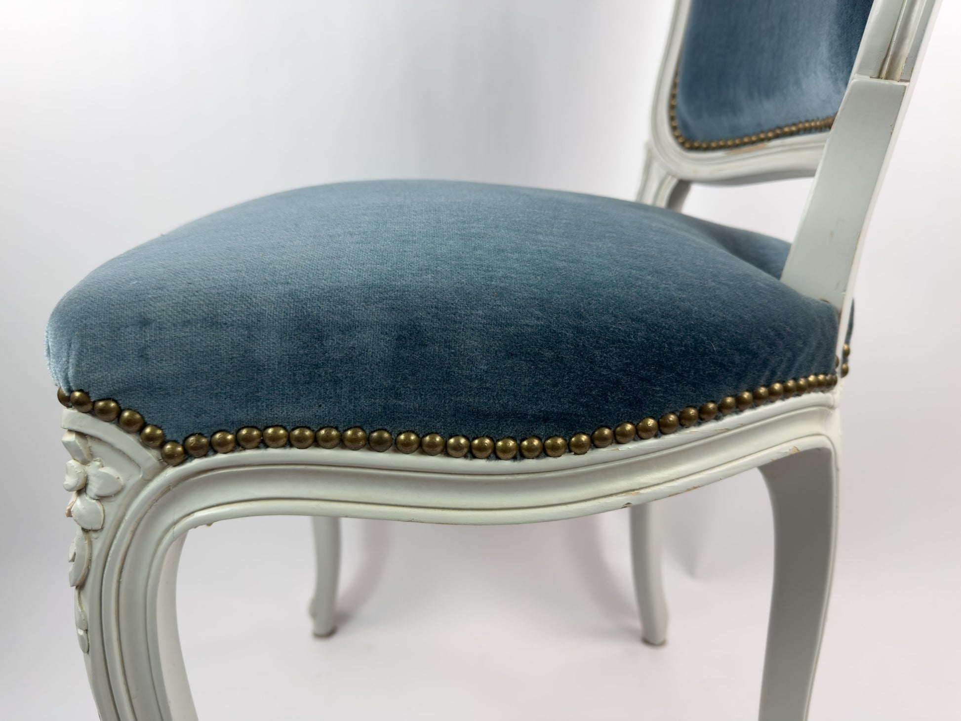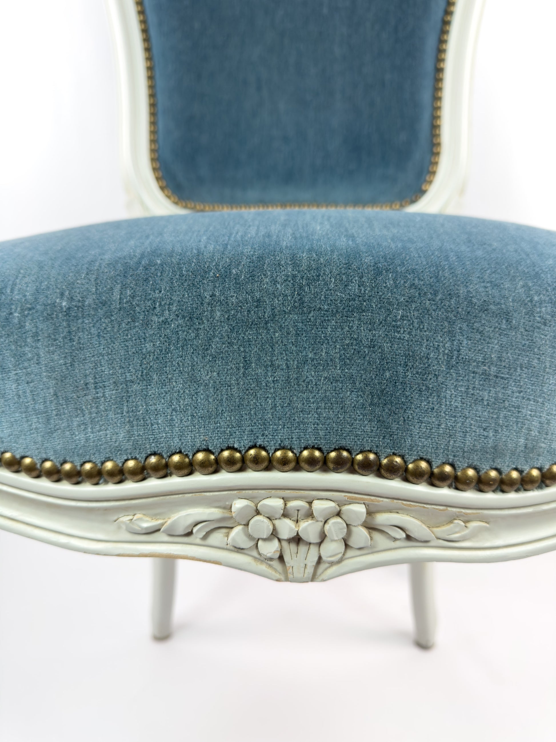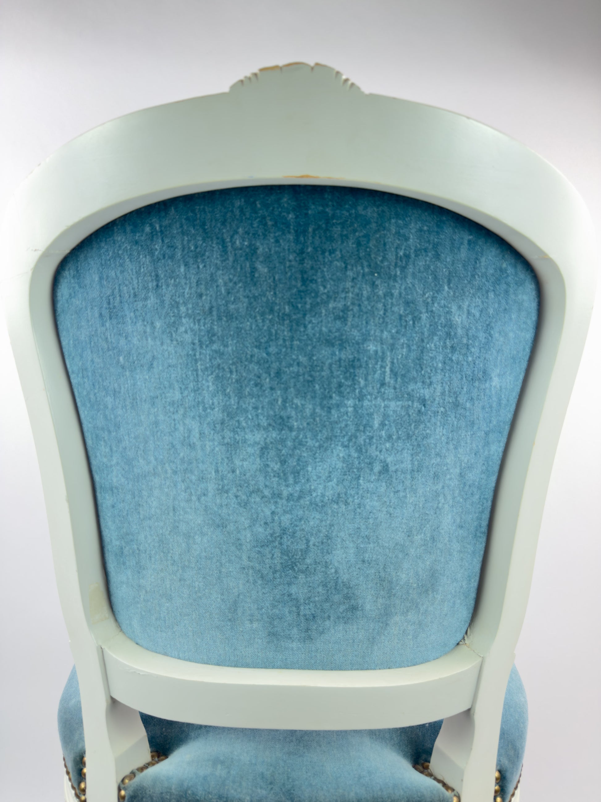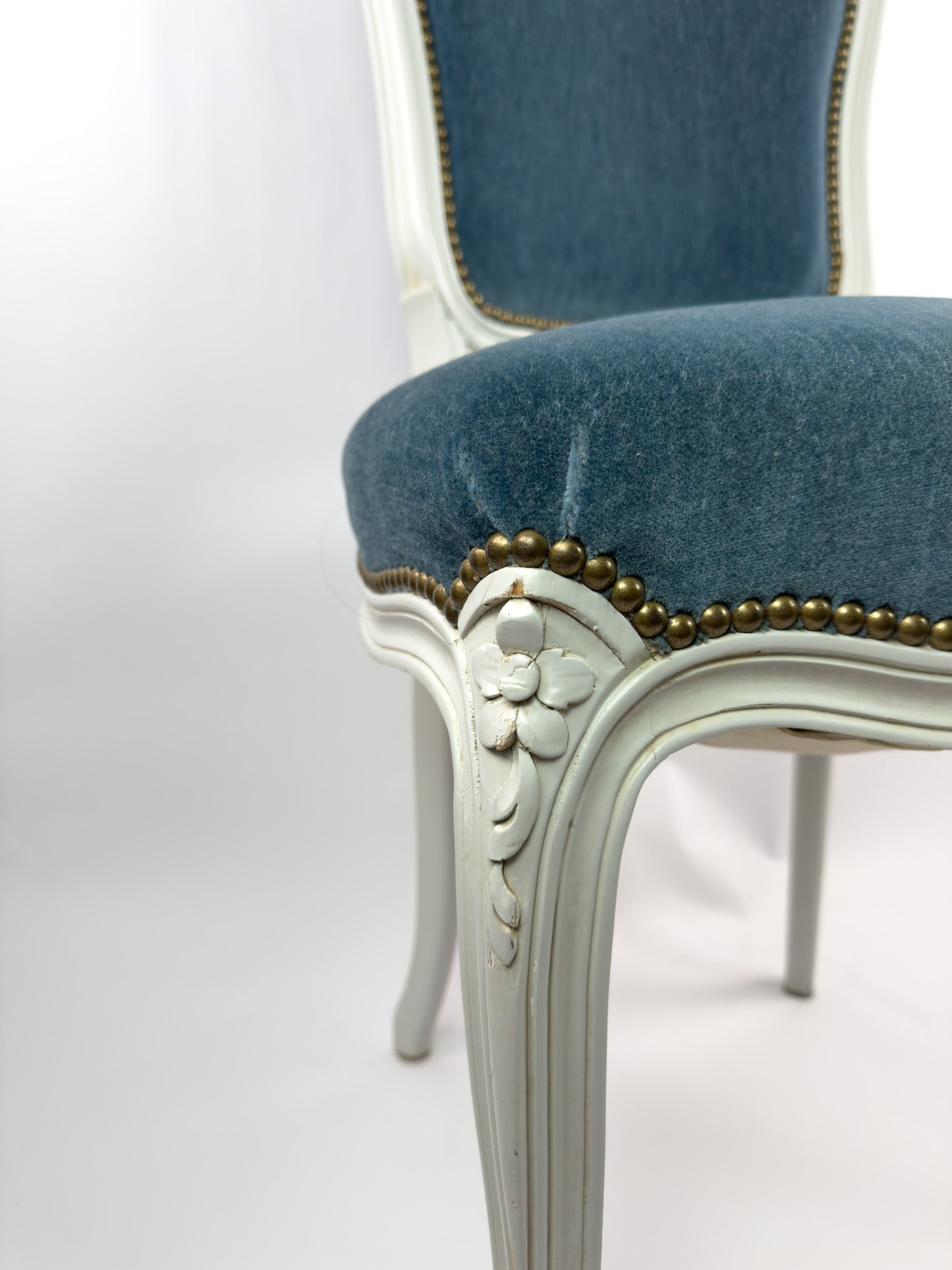 Vintage Louis XV Style Painted Wood Chair with Blue Velvet Upholstery
