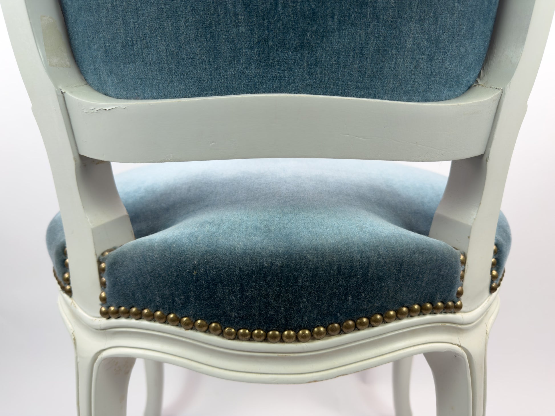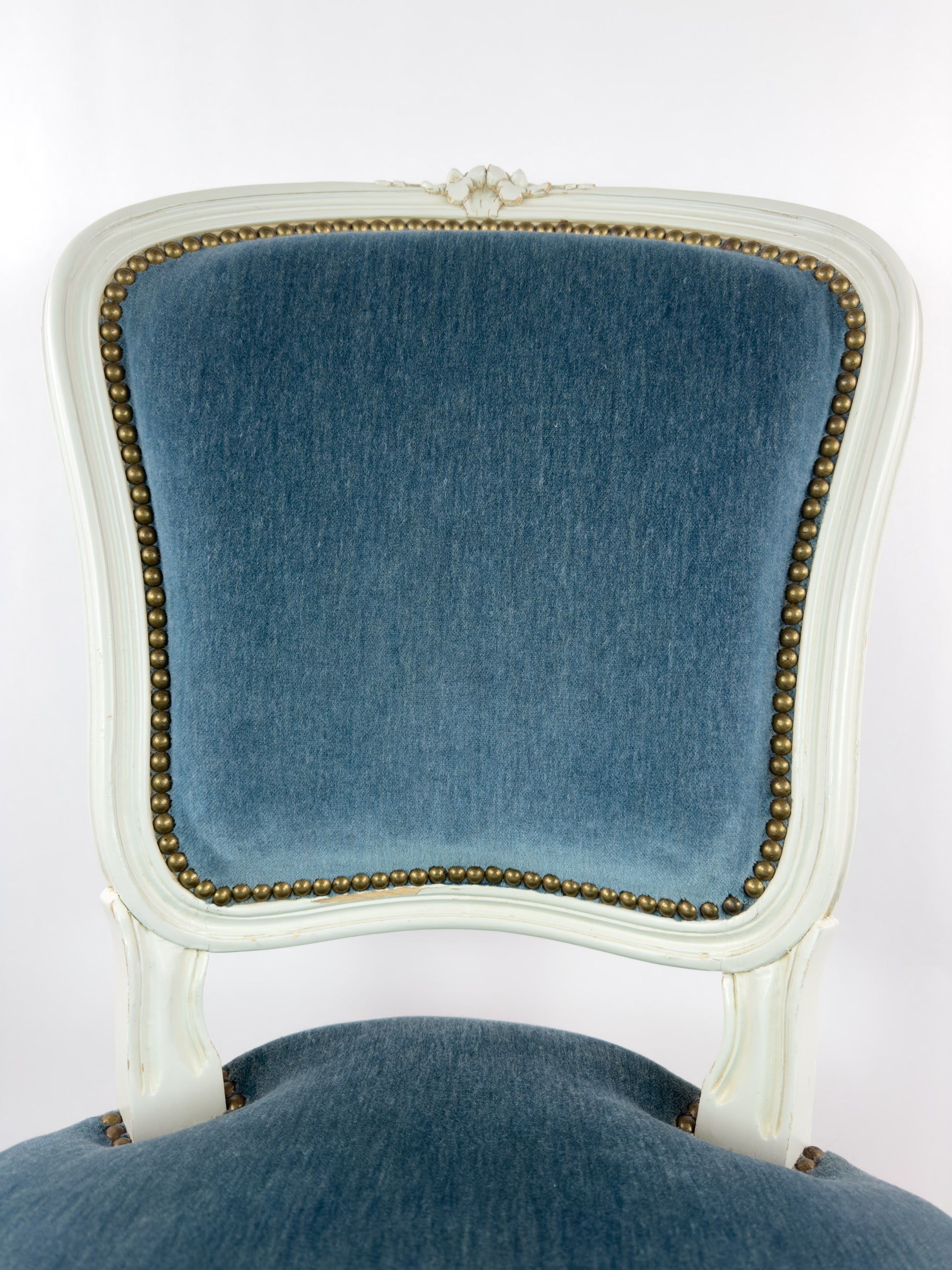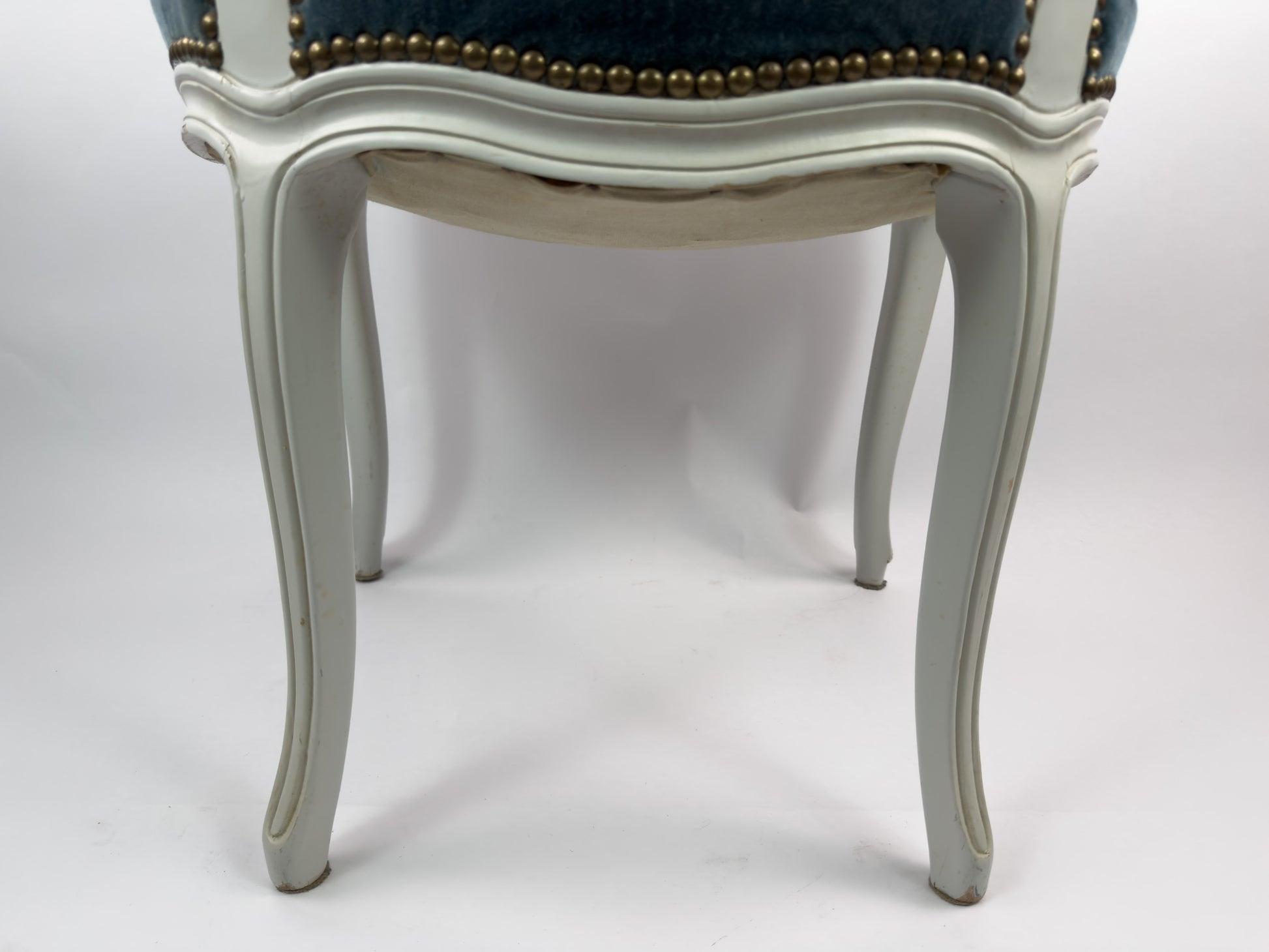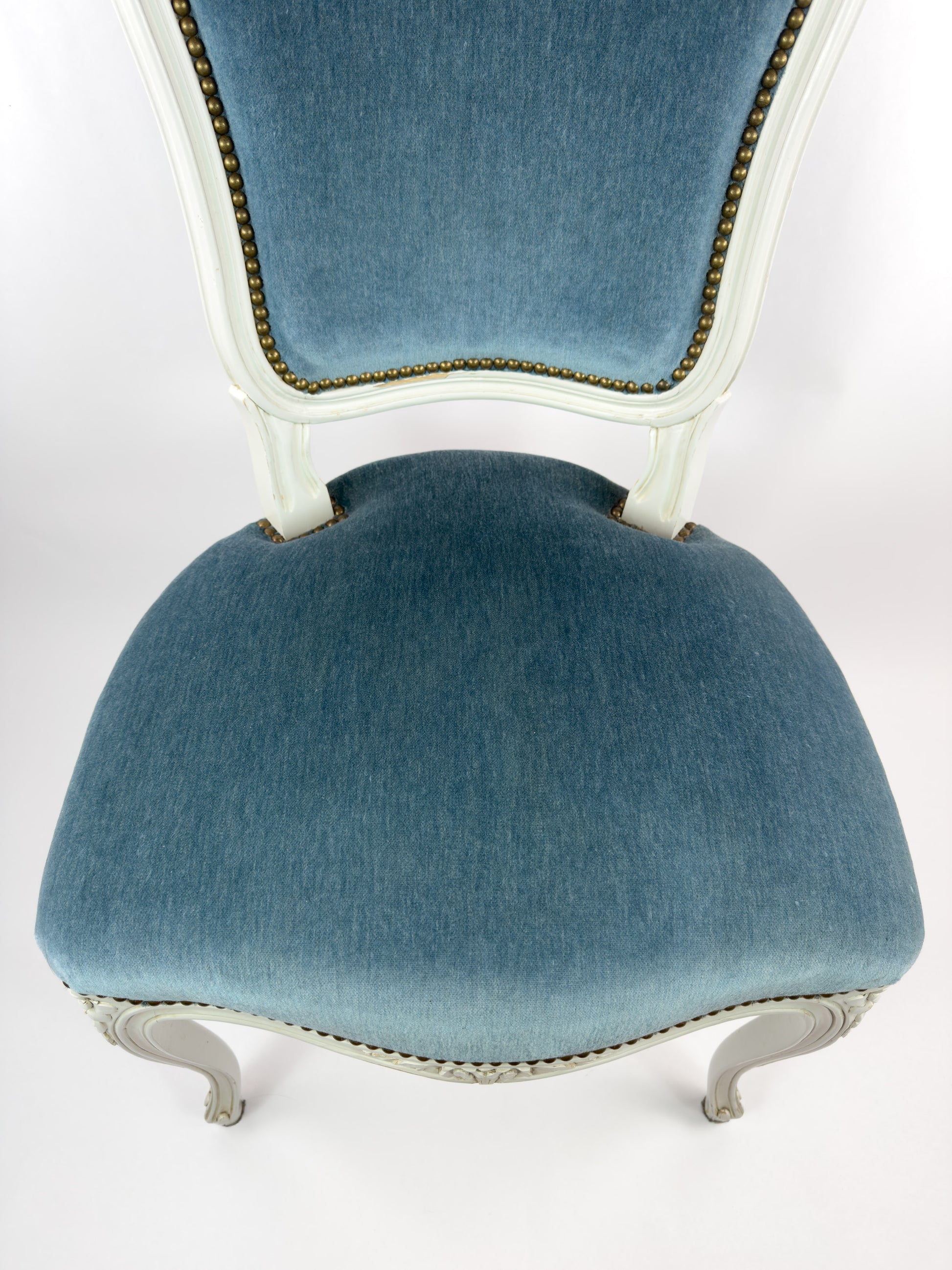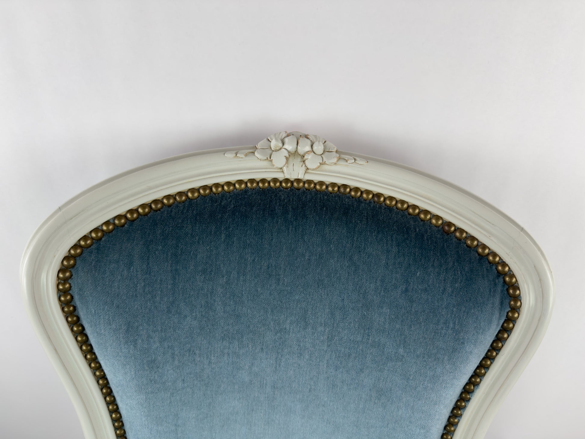 Vintage Louis XV Style Painted Wood Chair with Blue Velvet Upholstery